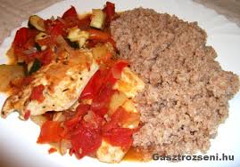Hozzávalók:halfilé, rizs, hagyma, curry, chili, só, bors, babérlevél, koriander, fahéj, reszelt sajt, ketchup. A halat sózzuk borsozzuk, és elősütjük. A hagymát megfonnyasztjuk, és hozzá adjuk a rizst, fűszerezzük, majd megfőzzük(babérlevél, fahéj, curry fűszer, só, koriander). Jénai tálba egy réteg rizs, hal, reszelt sajt, ketchup,addig ismételjük, míg el nem fogy.A tetejére reszelt sajtot szórunk,ketchuppal berácsozzuk, és megsütjük.